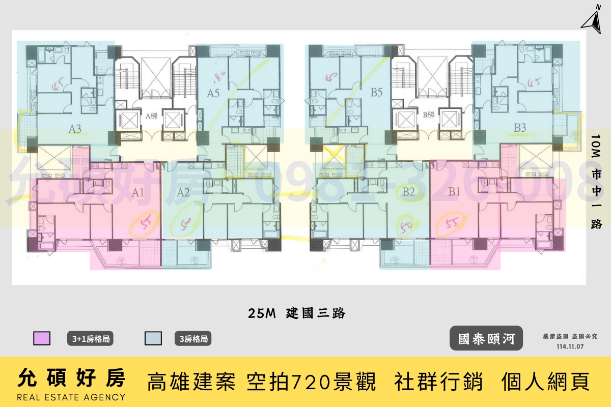 坪數規劃:三房(40~50坪) 、 3+1房(55坪)。