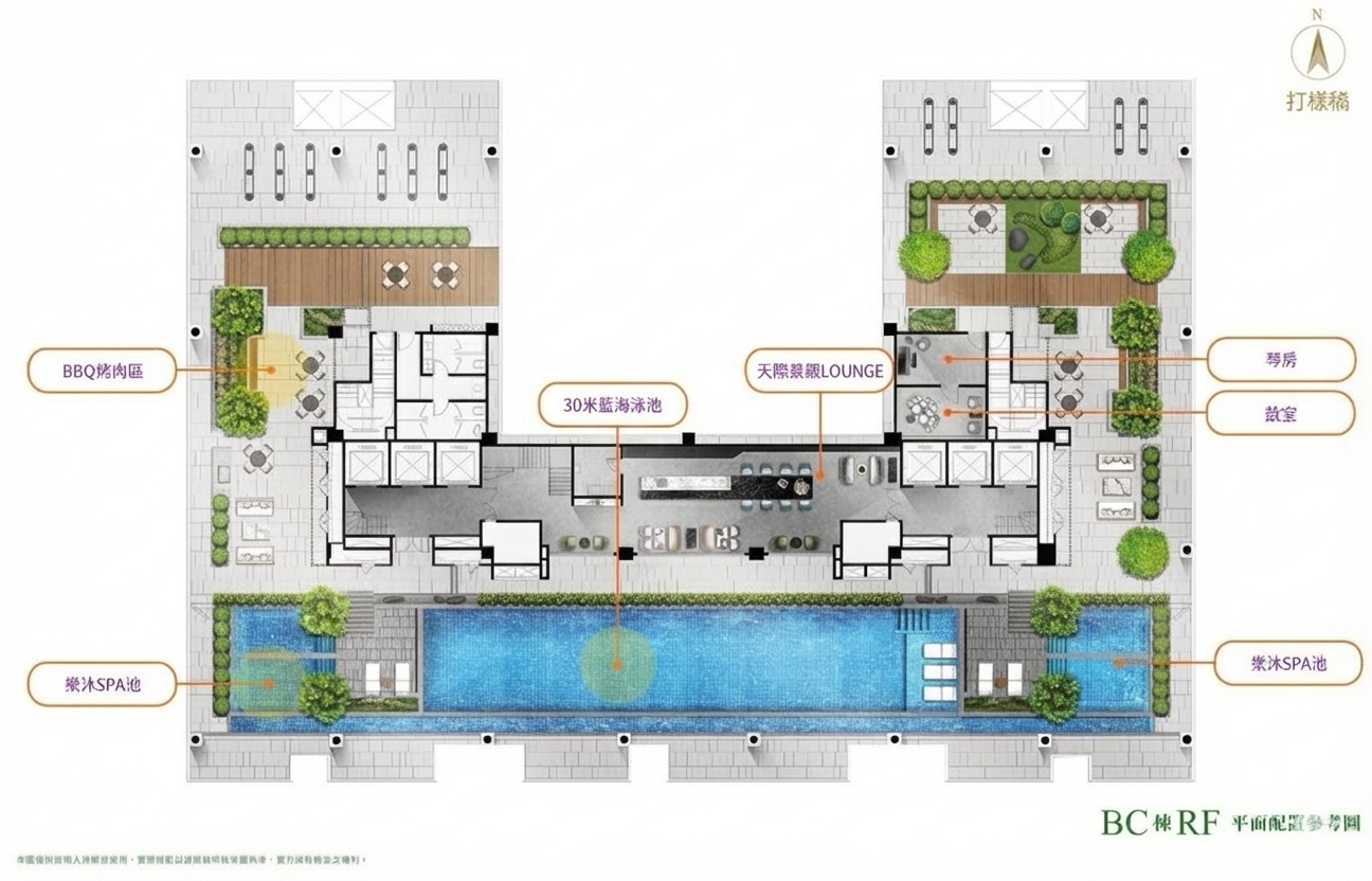RF:SKY Club空中會所、空中泳池、健身房、空中花園。